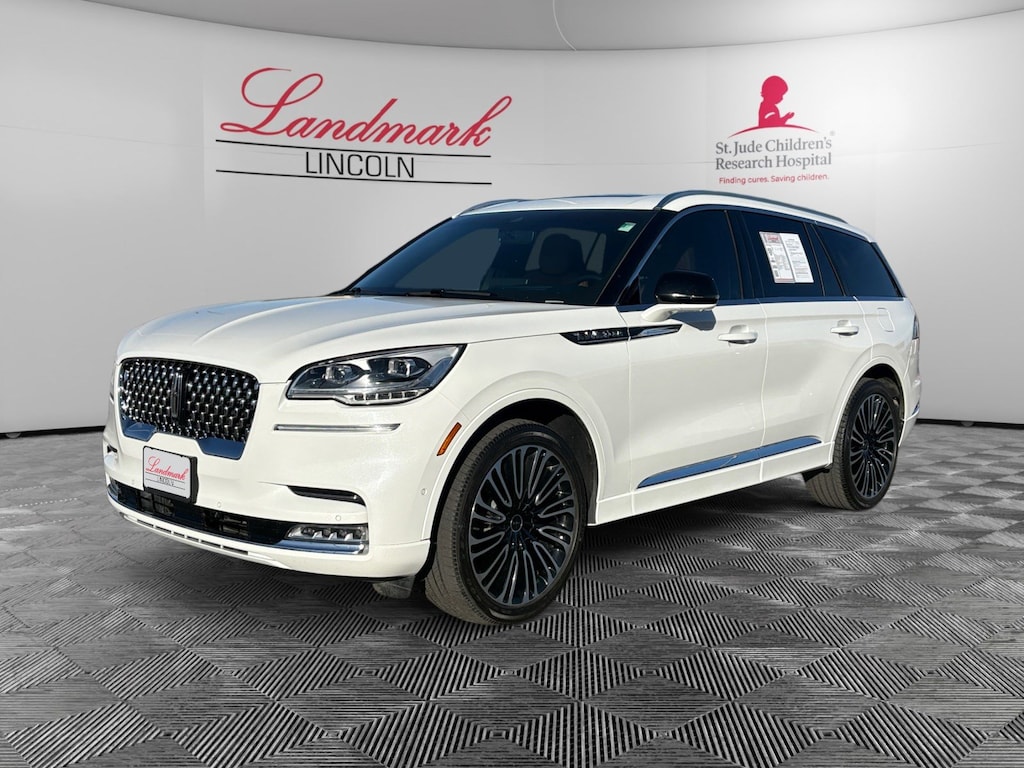 Pristine White Metallic Tri-Coat 2023 Lincoln Aviator Black Label CARFAX One-Owner. AWD 10-Speed Automatic 3.0L V6 30-Way Perfect Position Seats w/Active Motion, 4-Pin & 7-Pin Connectors, Air Glide Suspension w/Dynamic Lower Entry, Auto High-beam Headlights, Automatic temperature control, Black Floor Carpet/Mats, Blind Spot Information System, Class IV Hitch & Wiring, Class IV Trailer Tow Package, Darker Full Engine Turn Appliques, Delay-off headlights, Dynamic Handling Package, Ebony Headliner, Ebony Leather-Wrapped Interior, Equipment Group 800A, Flight Theme, Heads-Up Display, Navigation System, Power Liftgate, Power moonroof: Panoramic Vista Roof, Radio: Revel Ultima 3D Audio System w/28 Speakers, Savannah Leather Heated/Ventilated Seats (76J), SiriusXM Radio, Smart Trailer Tow, SYNC 3 Communication & Entertainment System, Trailer Sway Control, Wheels: 22" Bright-Machined Aluminum.